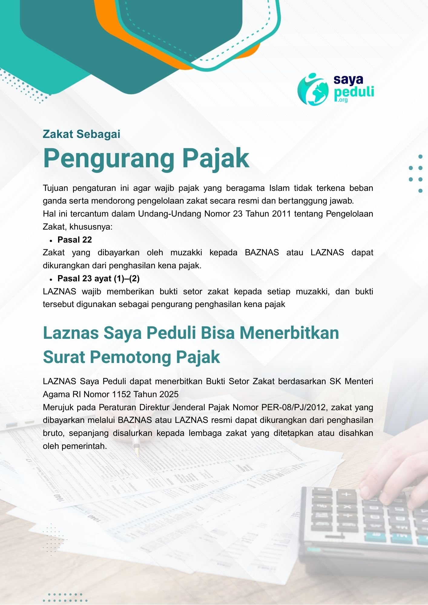 Mari tunaikan zakat melalui LAZNAS Saya Peduli.
