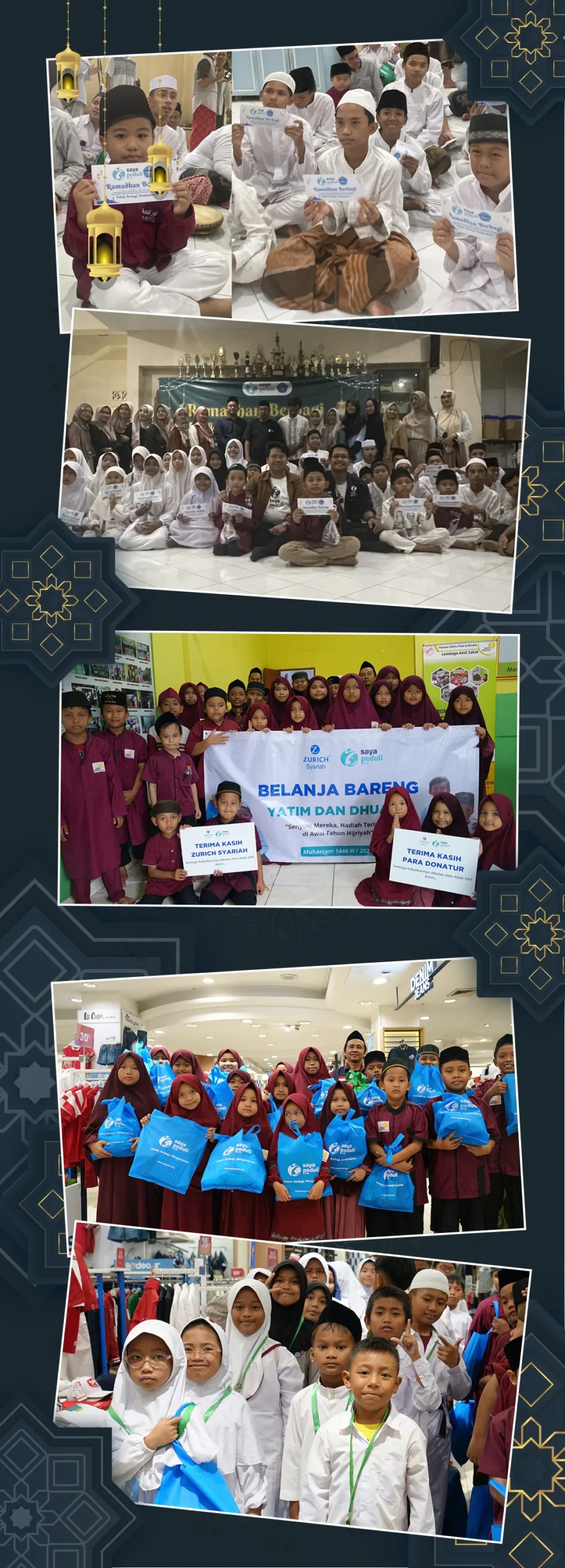 Melalui Program Kado Lebaran untuk Yatim & Dhuafa, LAZNAS Saya Peduli mengajak Anda menghadirkan kebahagiaan Idul Fitri yang lebih layak dan bermartabat bagi 3.000 anak yatim dan dhuafa. Program ini menghadirkan santunan Lebaran sekaligus pengalaman Belanja Bersama, agar anak-anak dapat memilih sendiri pakaian dan kebutuhan Lebaran mereka dengan rasa bahagia dan percaya diri.